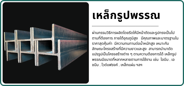 ประกอบด้วยเหล็กกล่อง เหล็กแป๊บ เหล็กตัวซี และเหล็กไอบีม ใช้ในงานโครงสร้างอาคาร โรงงาน โกดัง หรือเฟอร์นิเจอร์เหล็ก