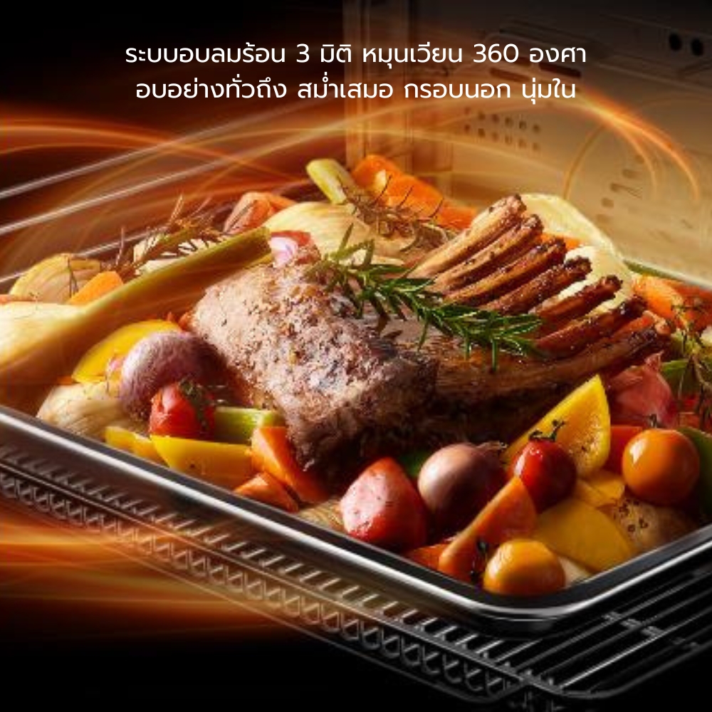 4 ฟังก์ชันครอบคลุมทั้งอบ, อบไอน้ำ, อบแห้ง และทอดไร้น้ำมันในเครื่องเดียว โหมด Grill Combi ปรับระดับความร้อนได้ 3 ระดับ กระจก Low-E 3 ชั้น กันความร้อนดีเยี่ยม ปลอดภัย สัมผัสหน้าบานได้ขณะใช้งาน ดูแลรักษาง่ายด้วยโปรแกรมทำความสะอาดตัวเครื่องอัตโนมัติ 3 โหมด ปรุงอาหารง่ายด้วย 52 เมนูอัตโนมัติ พร้อม 3 โปรแกรมในการละลายน้ำแข็ง อุ่นอาหาร และหมักแป้ง